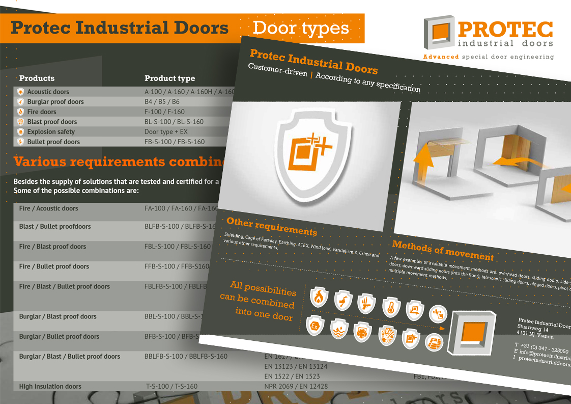 Protec Industrial Doors is specialised in advanced door solutions. In our special doors, the possibilities are very extensive. The doors of Protec Industrial Doors achieve the highest classifications in a large number of standards and certifications.